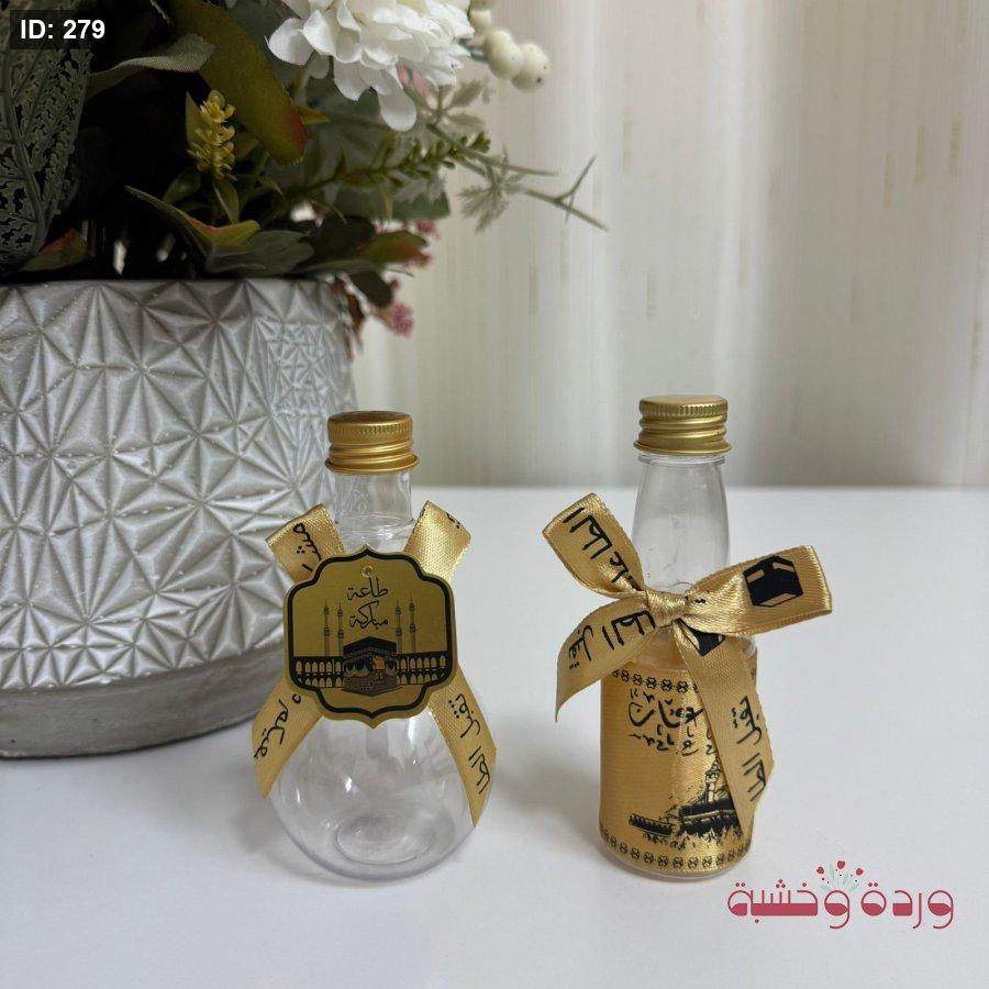 قناني ماء زمزم بلاستيك مع زينة ذهبي