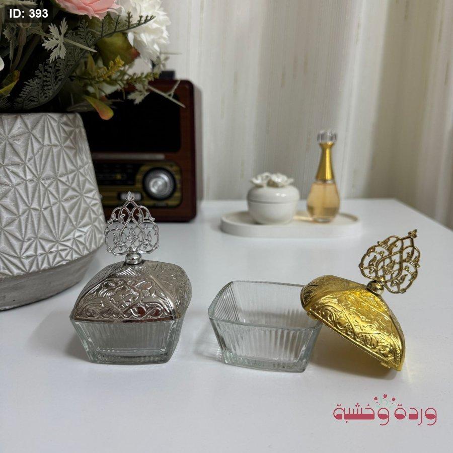 علبة زجاج مع غطاء معدن تصميم كتير مميز