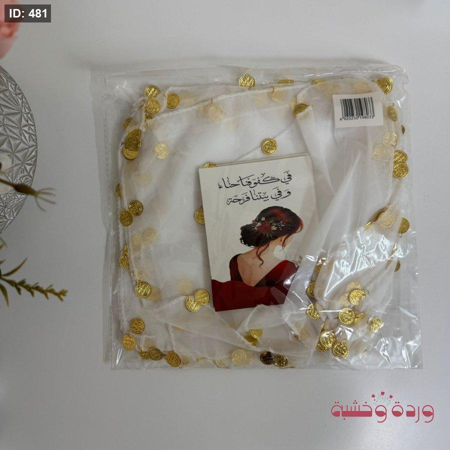 مناديل قماش جاهزة مع زينة ليرات وبطاقة مع عبارة "تصميم جاهز"