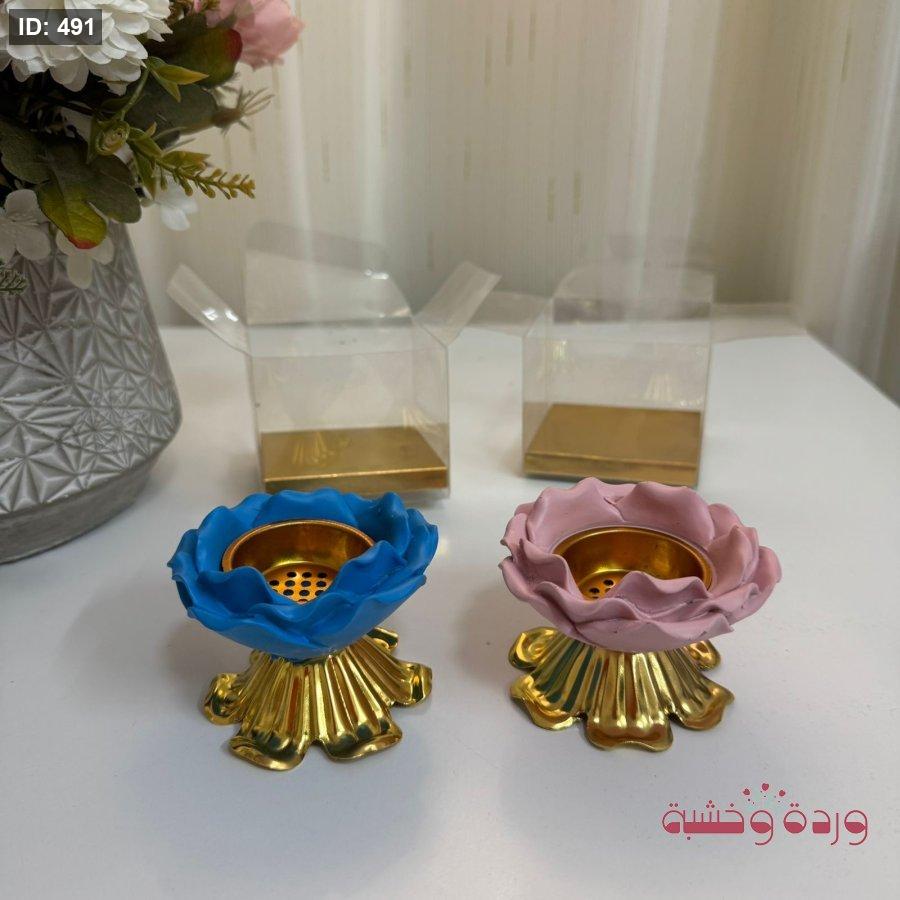 مباخر شكل وردة مع قاعدة دهبية + علبة شفاف